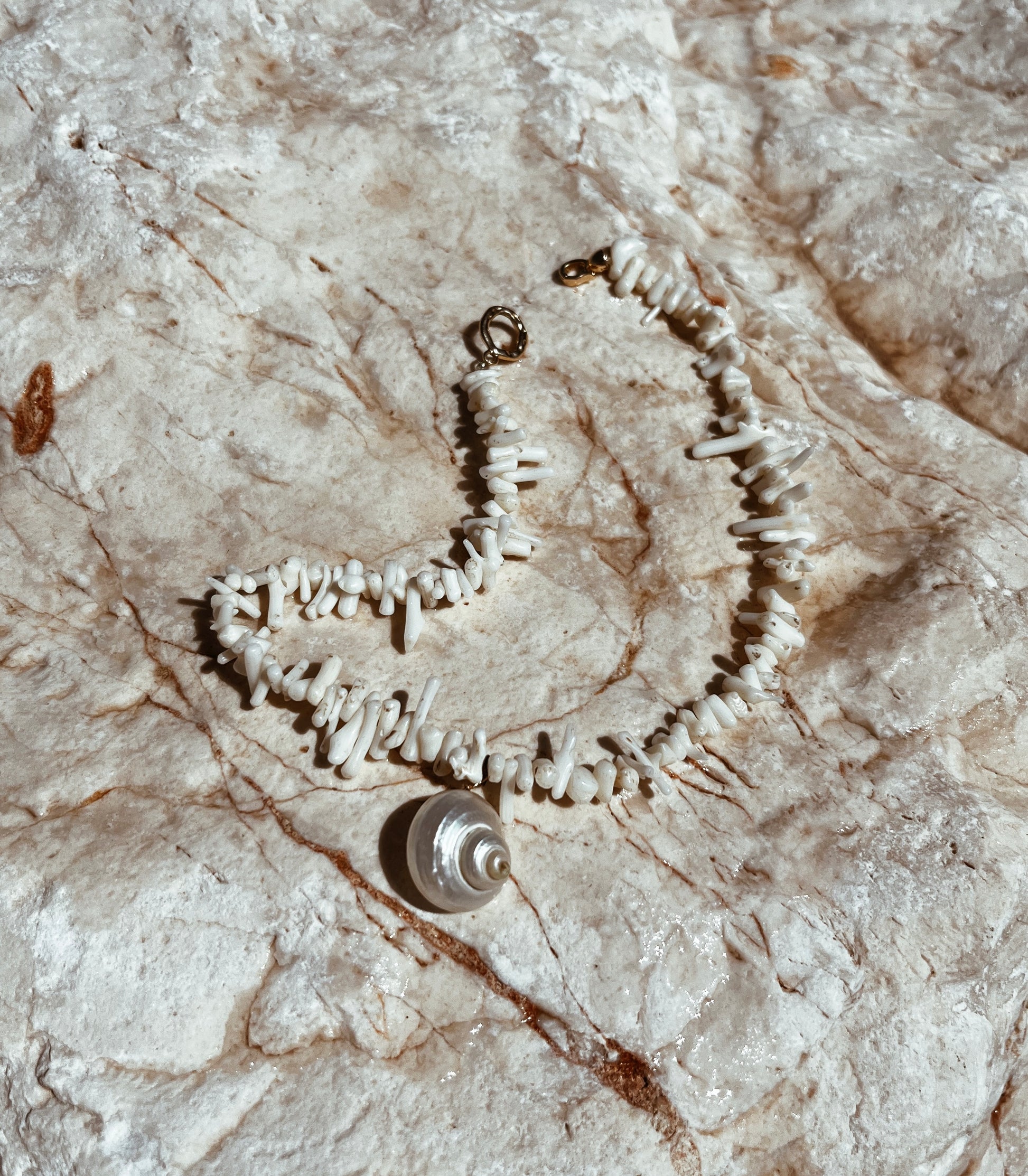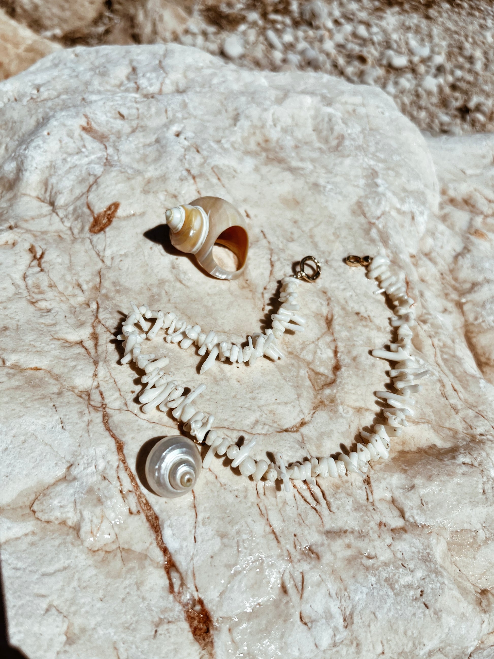 Indulge in the exotic allure of our handmade coral necklace, featuring a stunning shell pendant that captures the raw beauty of nature.
