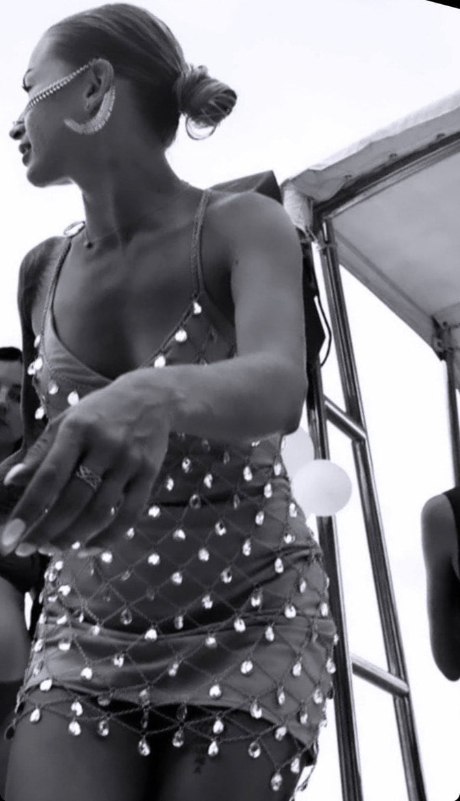 Handmade couture crystal dress is a really unique piece for special events. Combined with a bodysuit-dress.