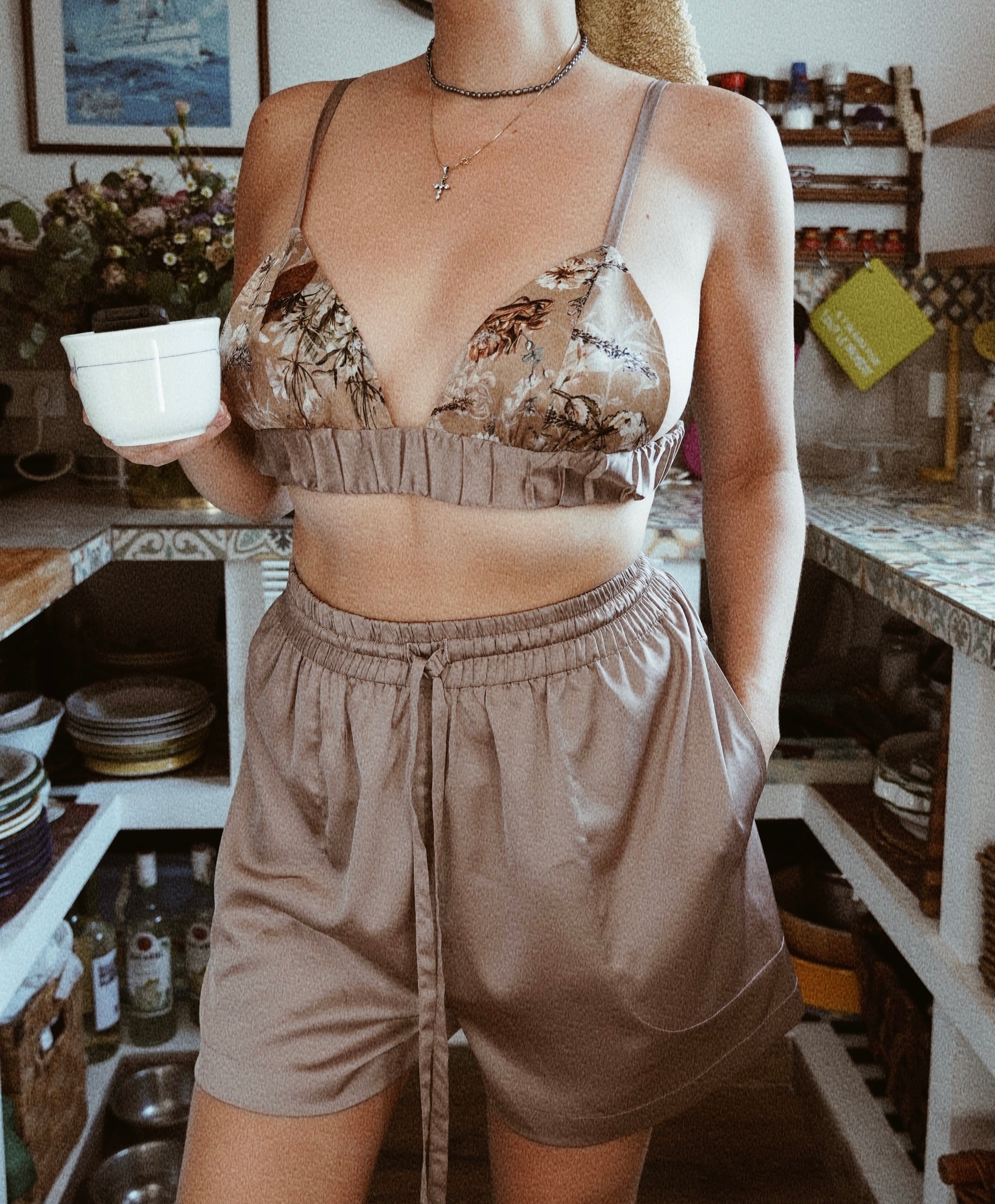 Experience luxury and comfort with our Flowers Silk Bra. This bra is perfect for both homewear and special summer events.